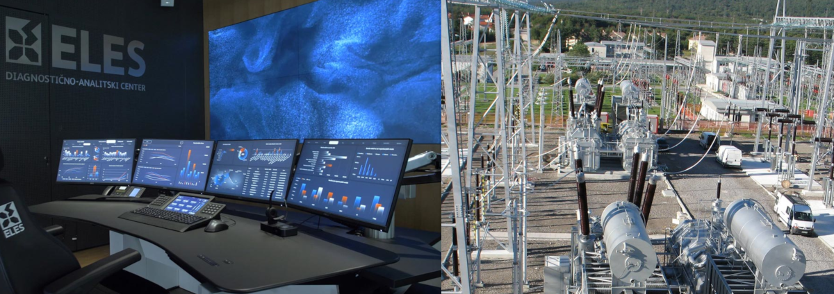 The Diagnostics and Analytics Centre control room (left). The phase-shifting transformer in Divača. (right).